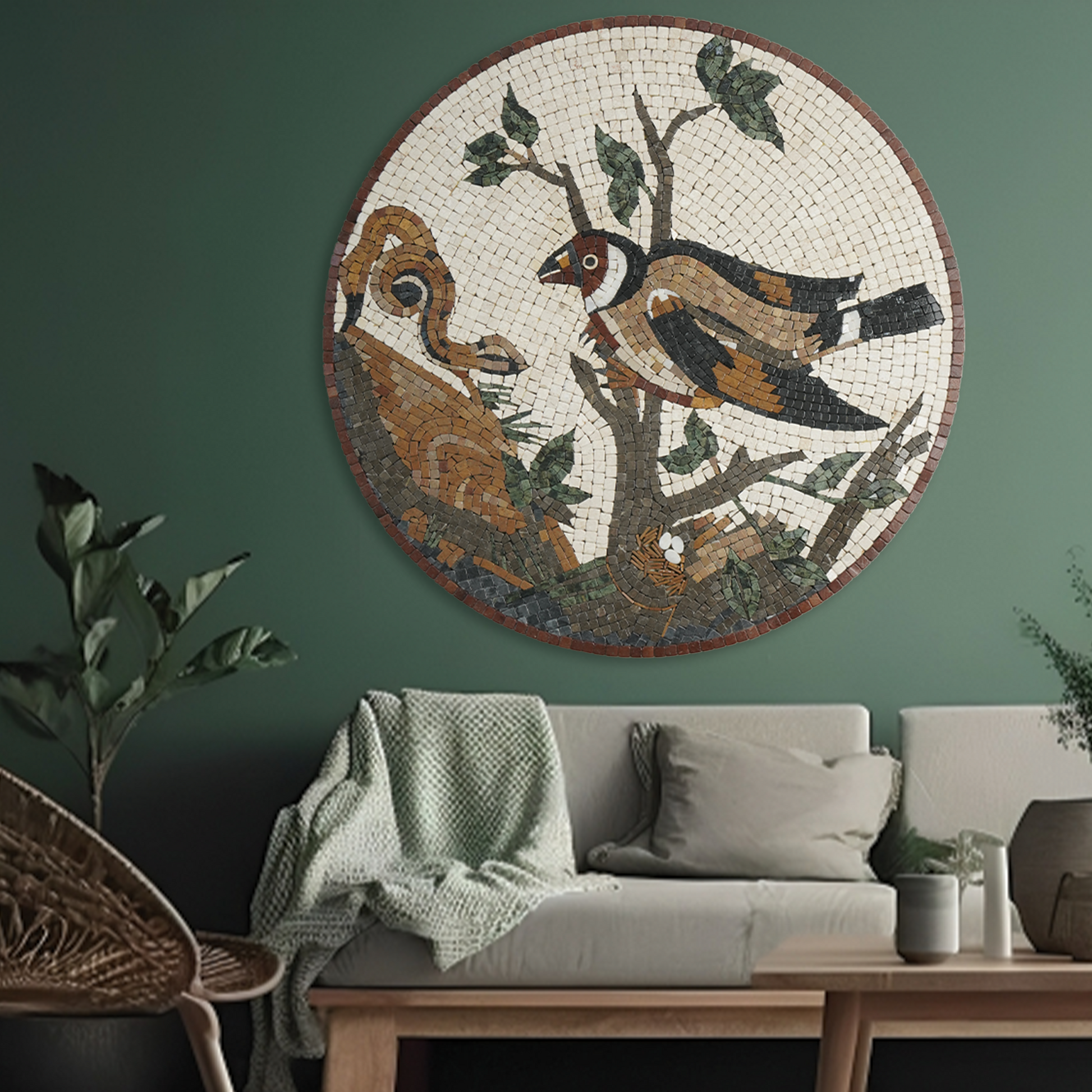 Bring the beauty of nature to your home with this handcrafted bird mosaic wall art, capturing the protective instinct of a bird in stunning detail. Made from hand-cut stone and marble, this ready-to-hang piece adds character and depth to your living room, bedroom, or office, blending tradition with modern elegance.