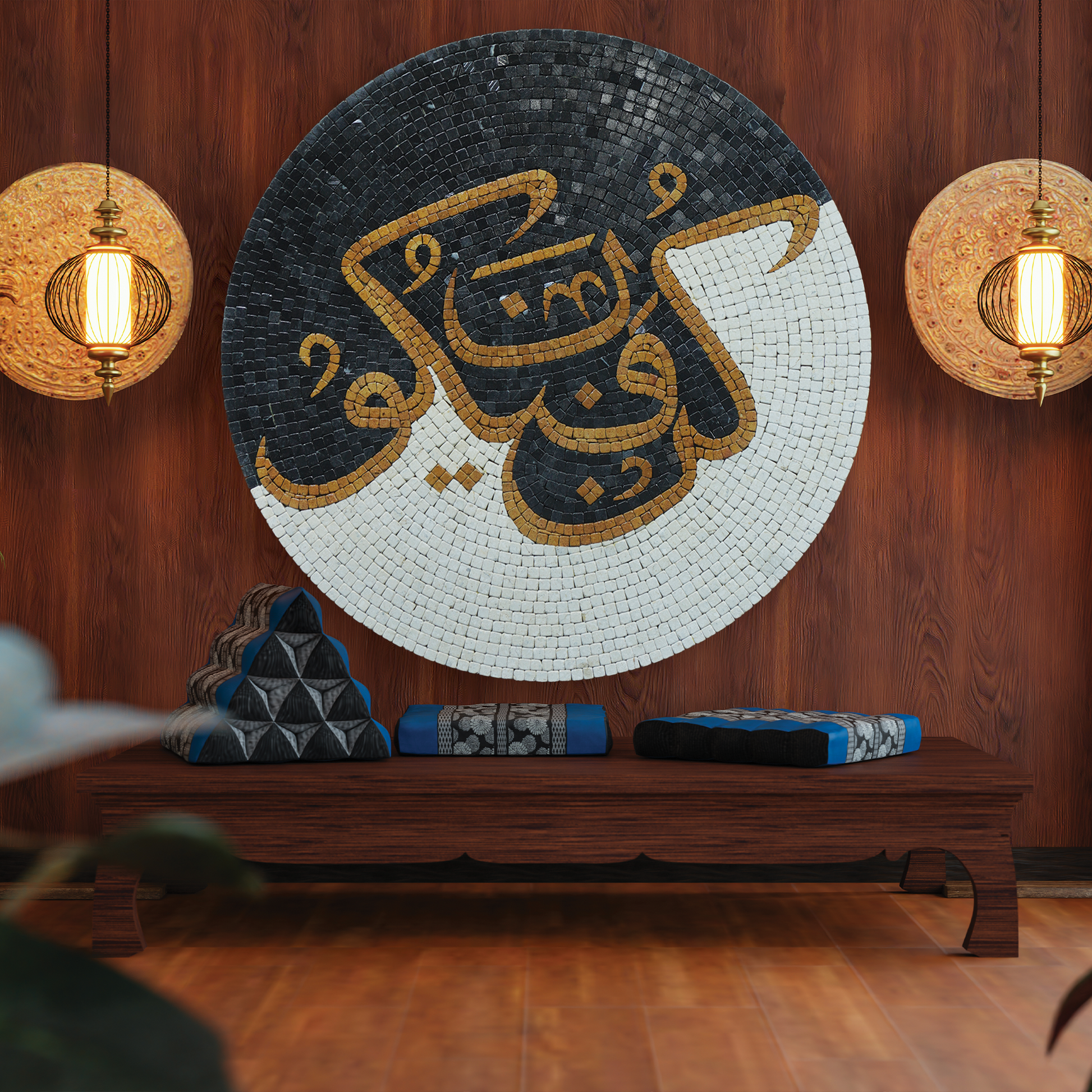 Elevate your space with the Kun Faya Kun Islamic Calligraphy Wall Art, symbolizing divine creation and the power of Allah’s will. Handcrafted with vibrant multicolor stones, this stunning artwork seamlessly blends spirituality and modern elegance. Perfect for living rooms, bedrooms, or prayer spaces, it creates a serene, inspiring atmosphere. Each piece is uniquely crafted for exceptional beauty and lasting durability. Ready to hang, it’s the perfect gift for any spiritual home.