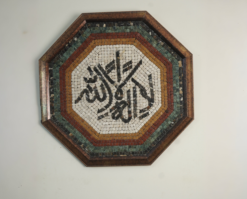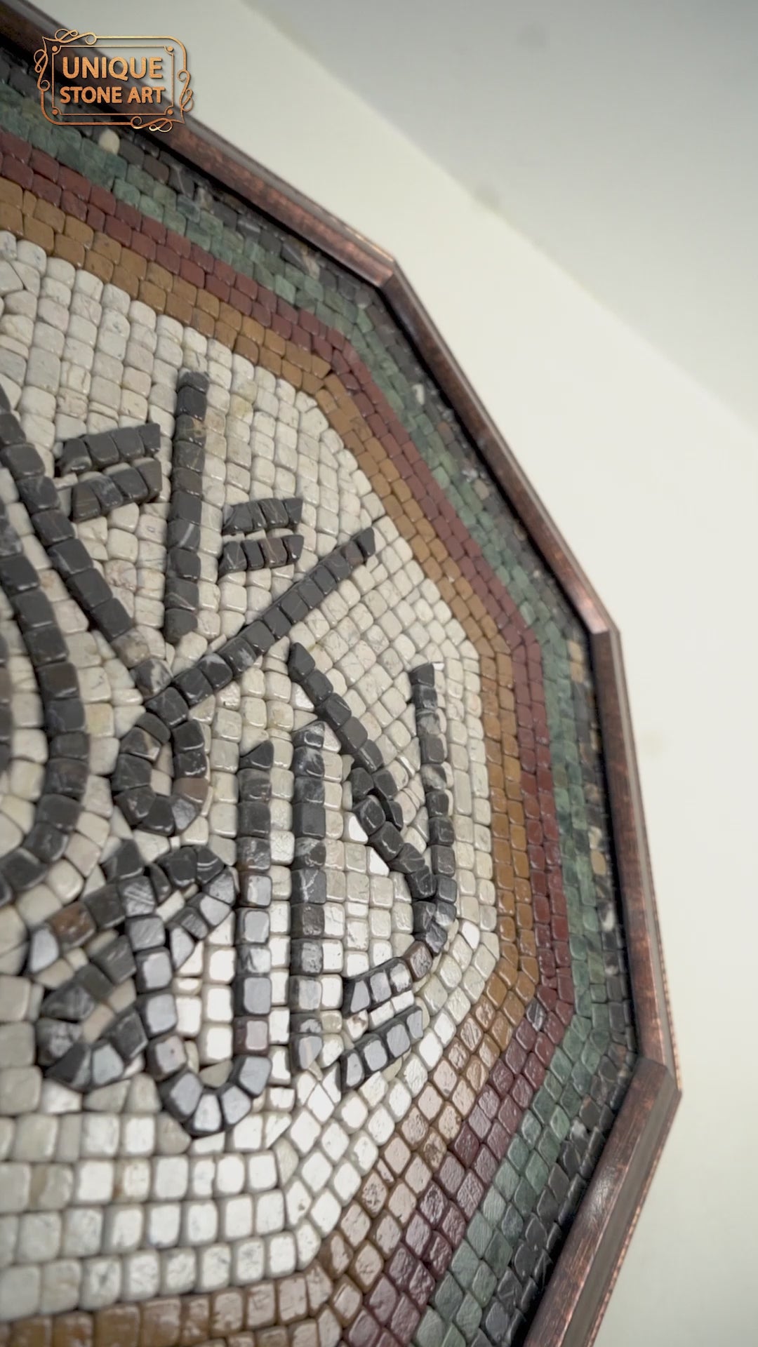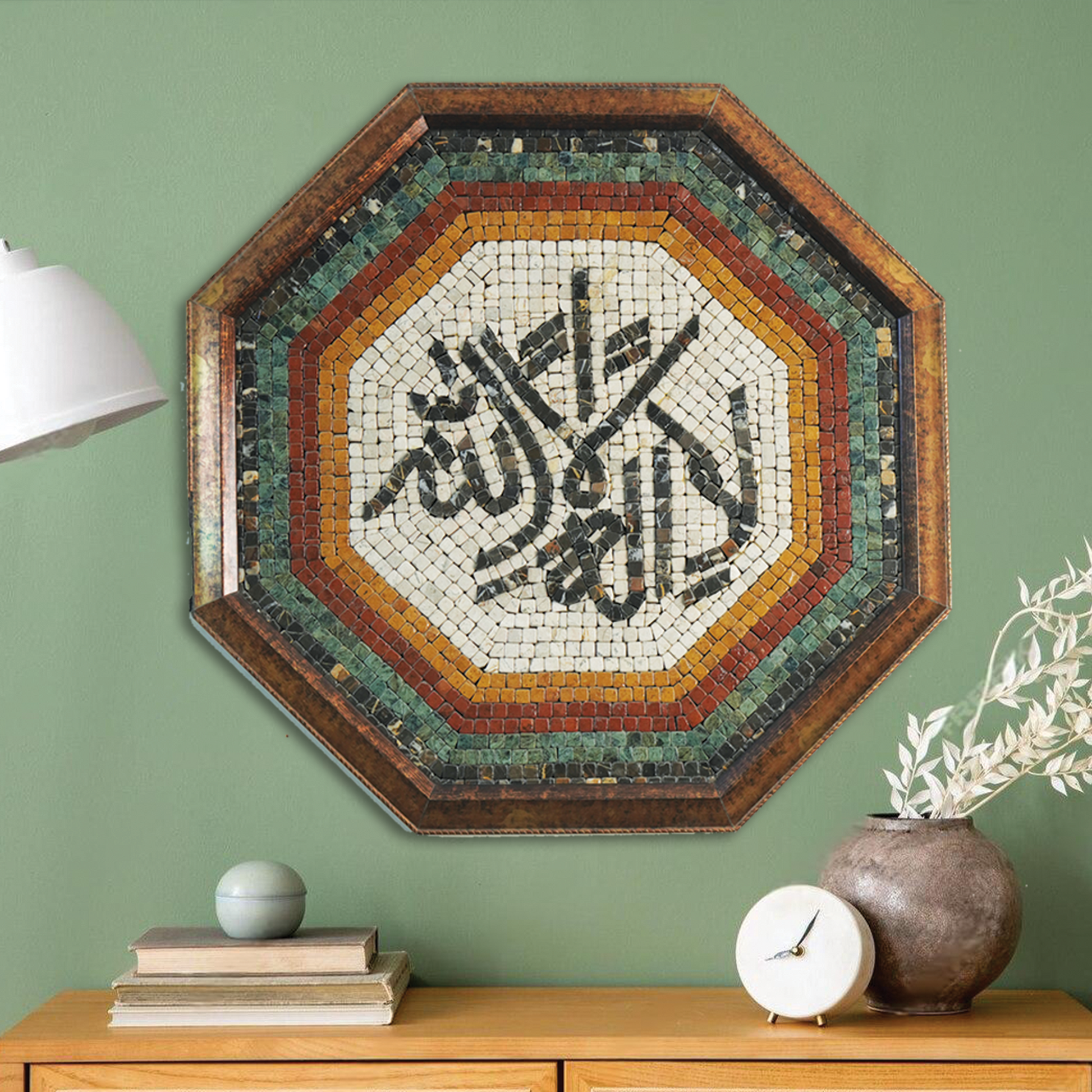 Enrich your home with this La Ilaha Illallah Islamic Mosaic Wall Art, showcasing powerful Kufic calligraphy in premium stone mosaic. Ideal for living rooms, prayer rooms, or Islamic centers, this handcrafted piece blends traditional beauty with spiritual significance. Durable and fade-proof, it brings a serene, meaningful touch to any space.