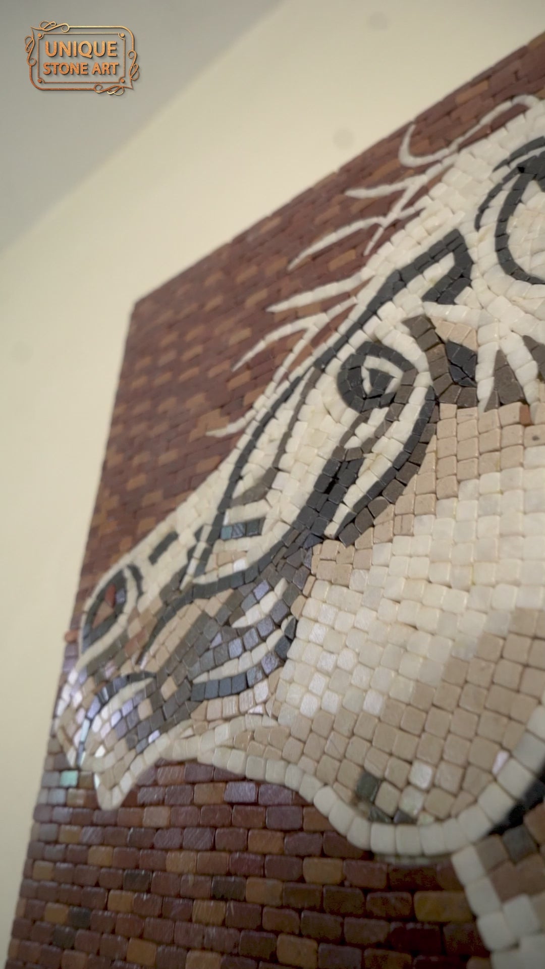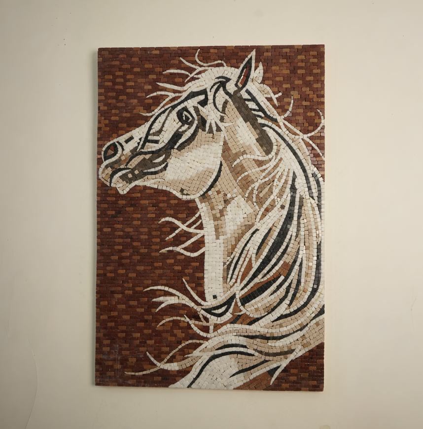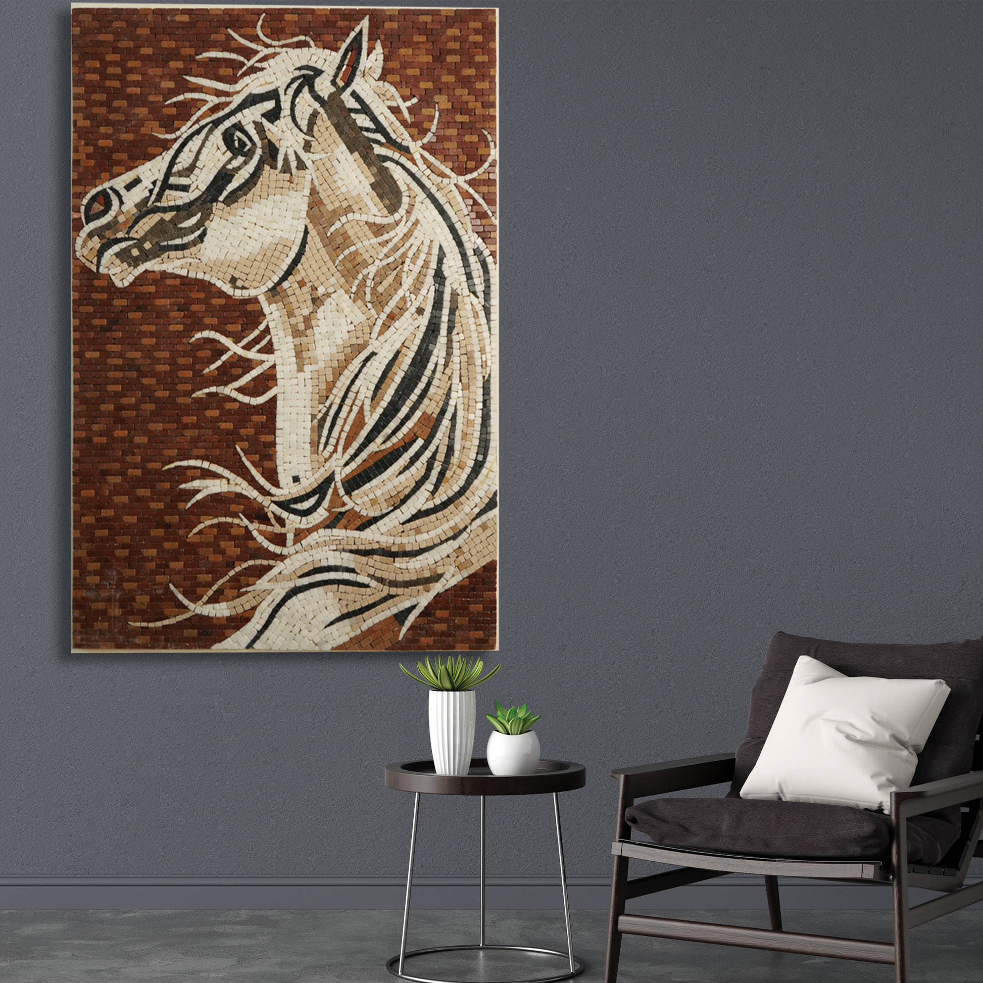 Bring movement and strength into your decor with this Majestic Horse Mosaic Artwork. Meticulously handcrafted, this stunning mosaic captures the power and grace of the horse in every detail. Its dynamic lines and vibrant colors make it a perfect focal point for living rooms, offices, or art lovers’ collections. The timeless design and durable craftsmanship ensure a lasting impression. Add a touch of natural energy and luxury to your home.