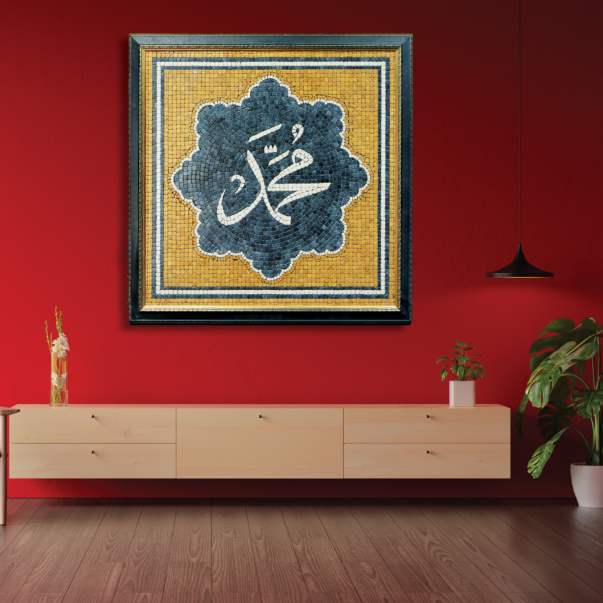 Elevate your space with this handcrafted Muhammad calligraphy wall art, expertly designed in premium quality stone. Featuring the sacred name “Muhammad” (PBUH) in elegant Arabic calligraphy, this Islamic mosaic decor brings spiritual depth and modern sophistication to your living room, bedroom, or office. Ready to hang and built to last, it’s a timeless statement piece for any home.