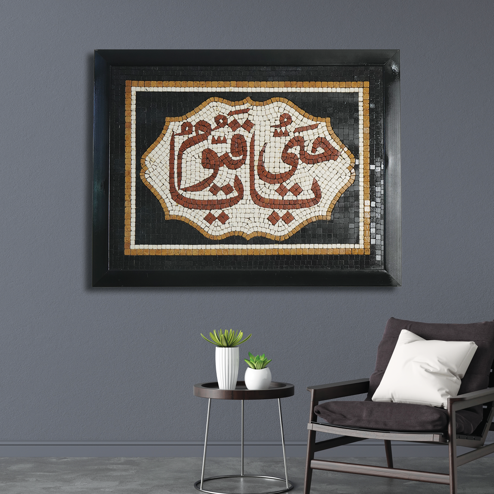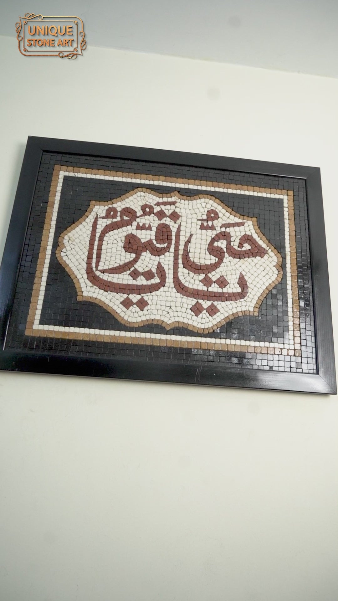 Elevate your space with the YA Hayyu YA Qayyum Calligraphy Art—a handcrafted mosaic featuring the sacred names of Allah in vibrant, multi-color stone and marble. This unique piece blends spiritual elegance with artistic detail, creating a serene and inspiring atmosphere. Durable and ready to hang, it’s perfect for any room in your home, office, or prayer area. A meaningful gift that combines faith, beauty, and timeless craftsmanship.
